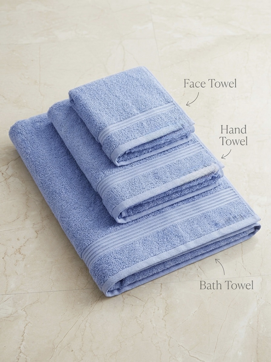 • Face Towel (1 pieces): 33 cm x 33 cm – Soft and gentle for facial care and makeup removal.