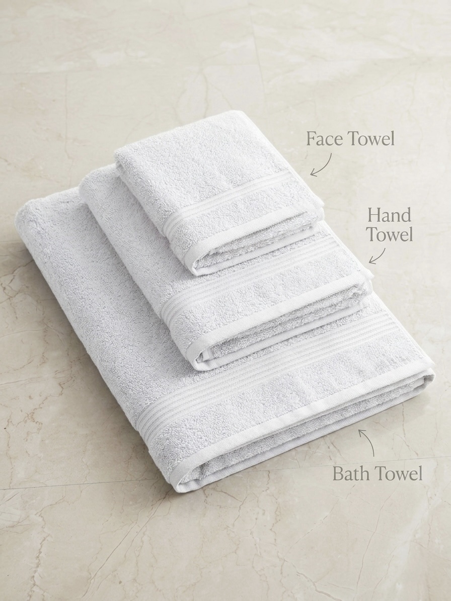 • Bath Towel (1 pieces): 70 cm x 140 cm – Generously sized for a full, cozy wrap after a bath or shower.
