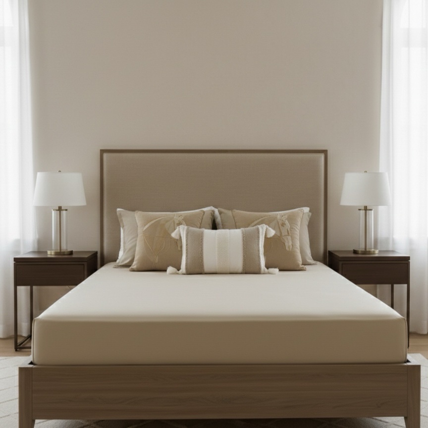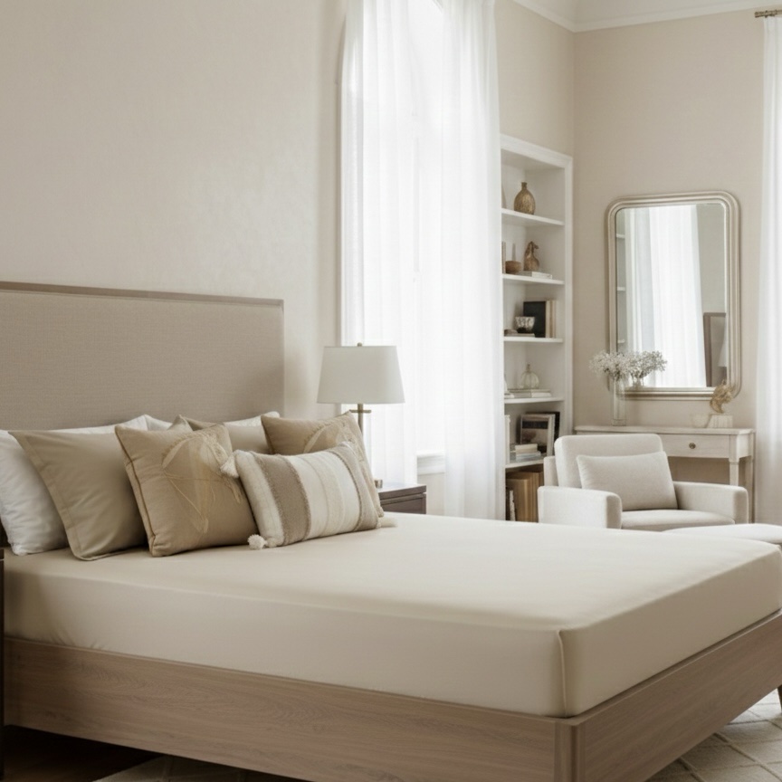 Made from high thread count pure cotton, this set offers unmatched breathability, durability, and luxury. The neutral beige shade blends effortlessly with any décor, creating a serene and sophisticated atmosphere.