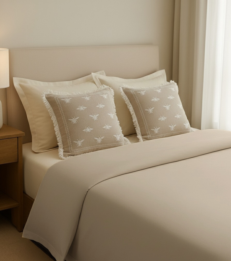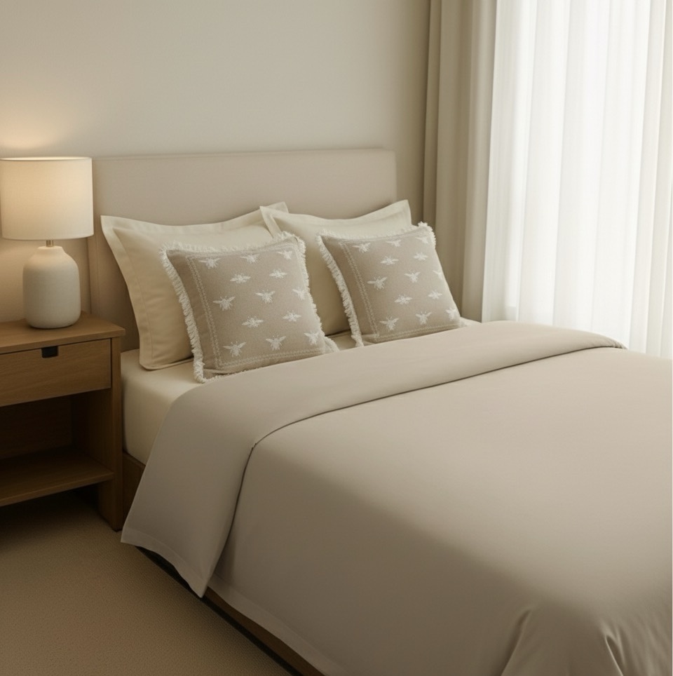 Crafted in premium cotton with timeless ivory beige elegance a complete bedding upgrade for a sophisticated bedroom.