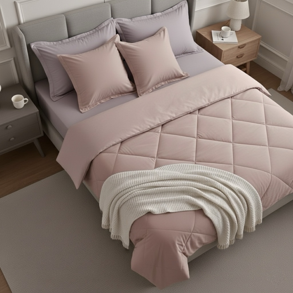 • 1 Ultra-Soft Comforter (90” x 95”) in a soothing pink tone, designed for year-round comfort