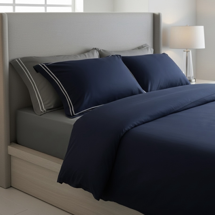 • 1 Ultra-Soft Duvet cover (90” x 95”) in a soothing Navy blue tone, designed for year-round comfort