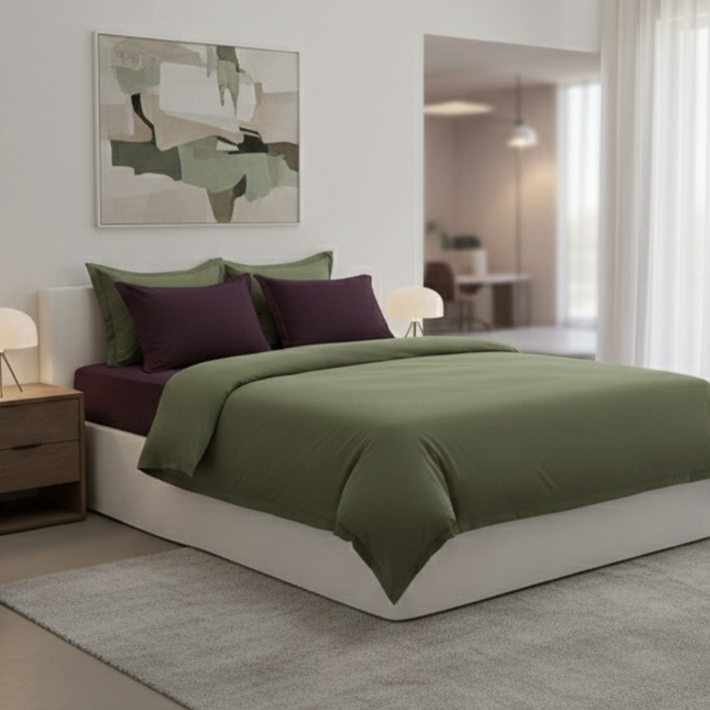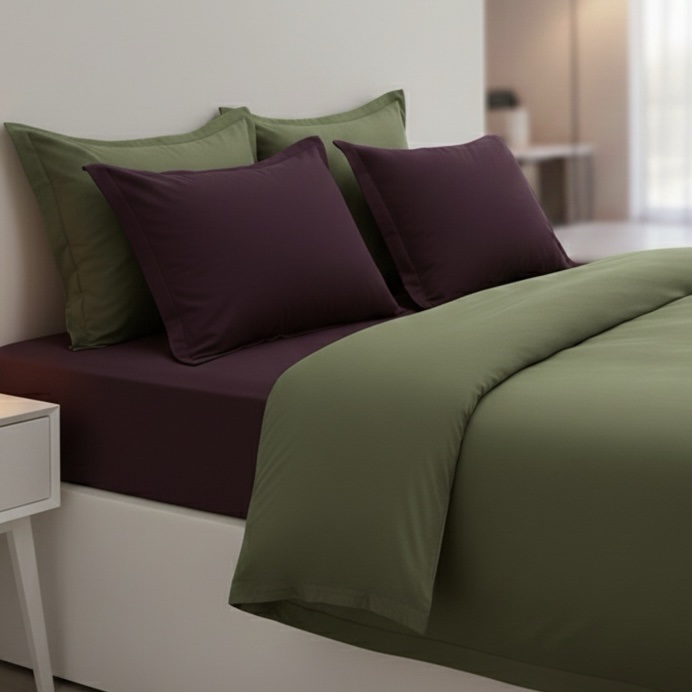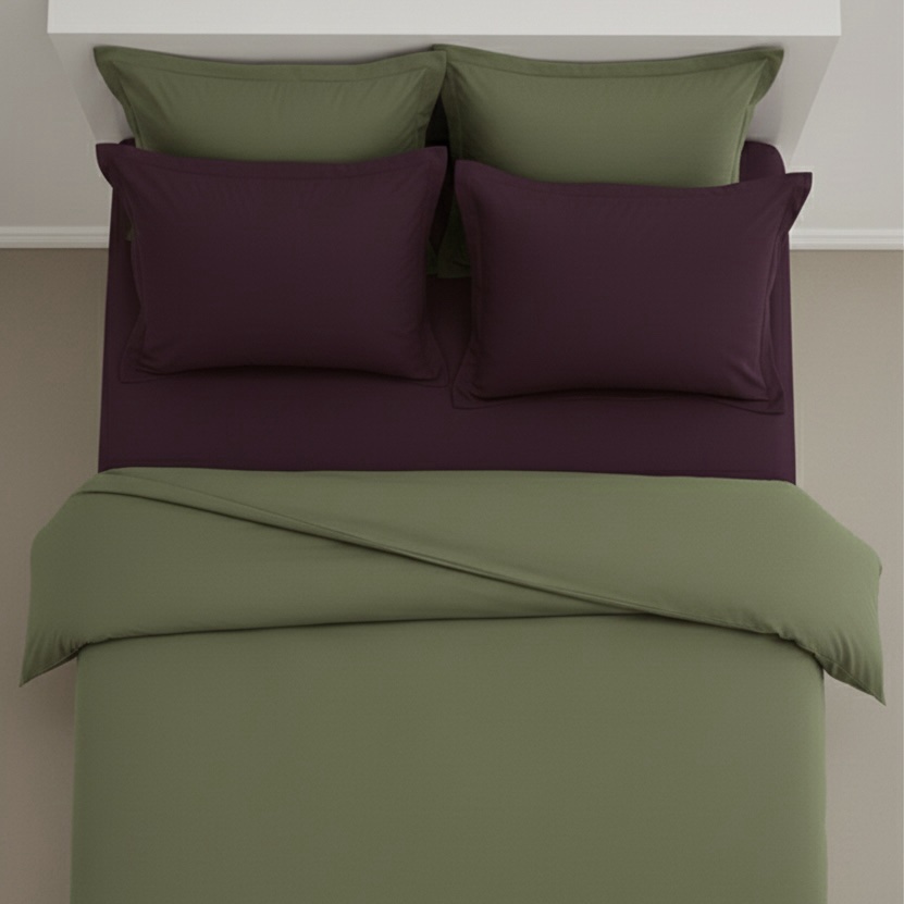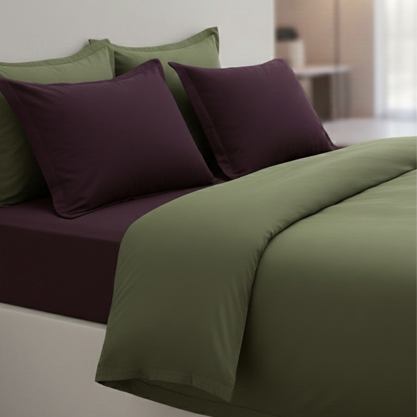 Transform your bedroom into a sanctuary of elegance with our Luxury plum solid and olive Complete Bedding Set. Thoughtfully curated for comfort and style, this premium collection includes:
