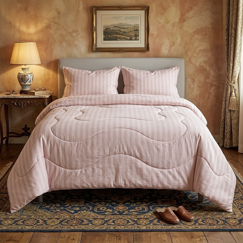 Baby pink striped Pure Cotton Comforter – 95 x 105” | Wavy Stitch Pattern with White Piping