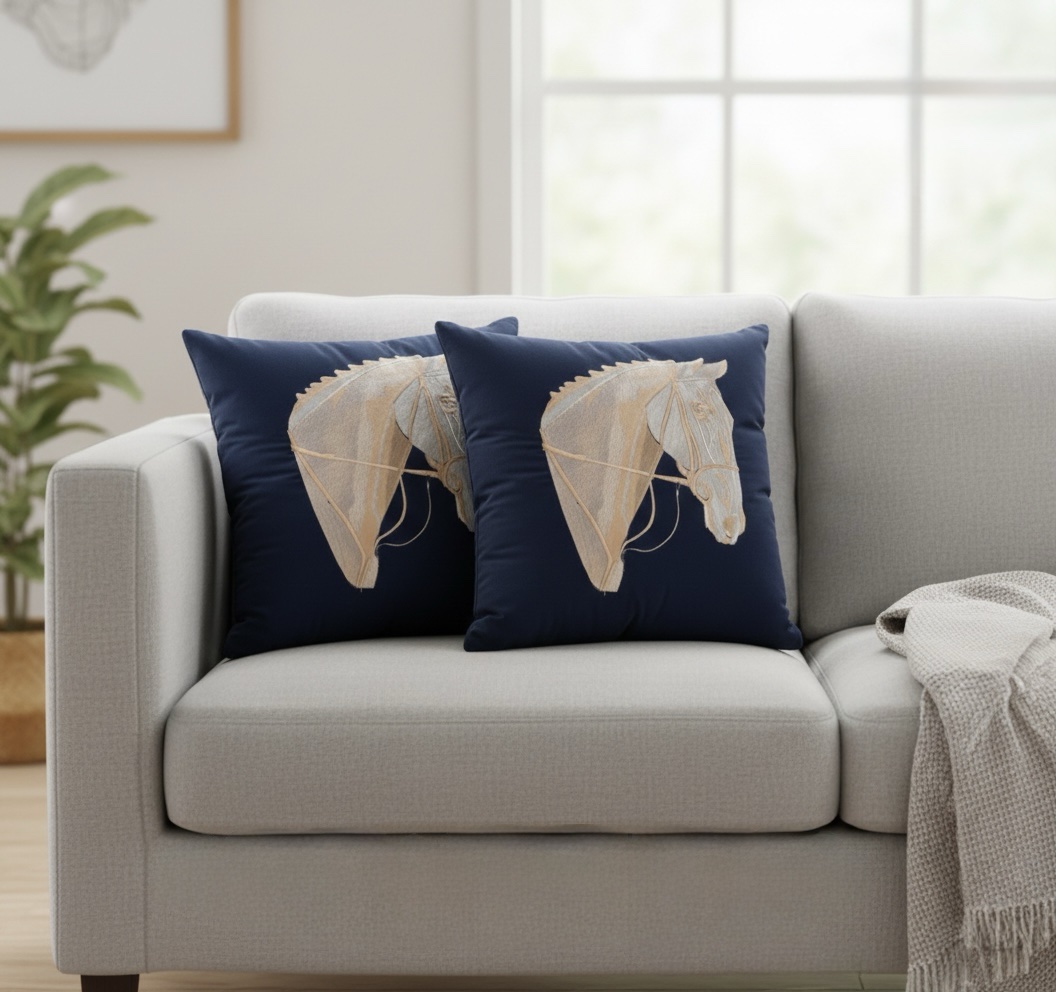 Elevate your decor with our versatile horse pattern Cushion Cover in blue, (16″ x 16″):