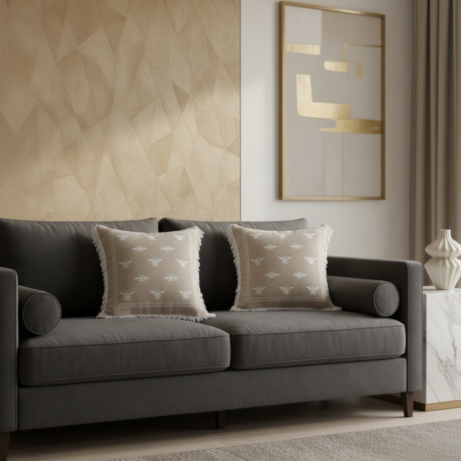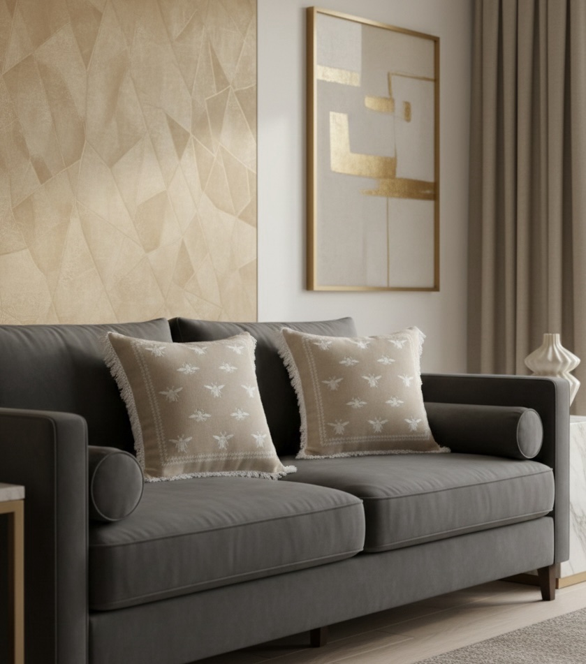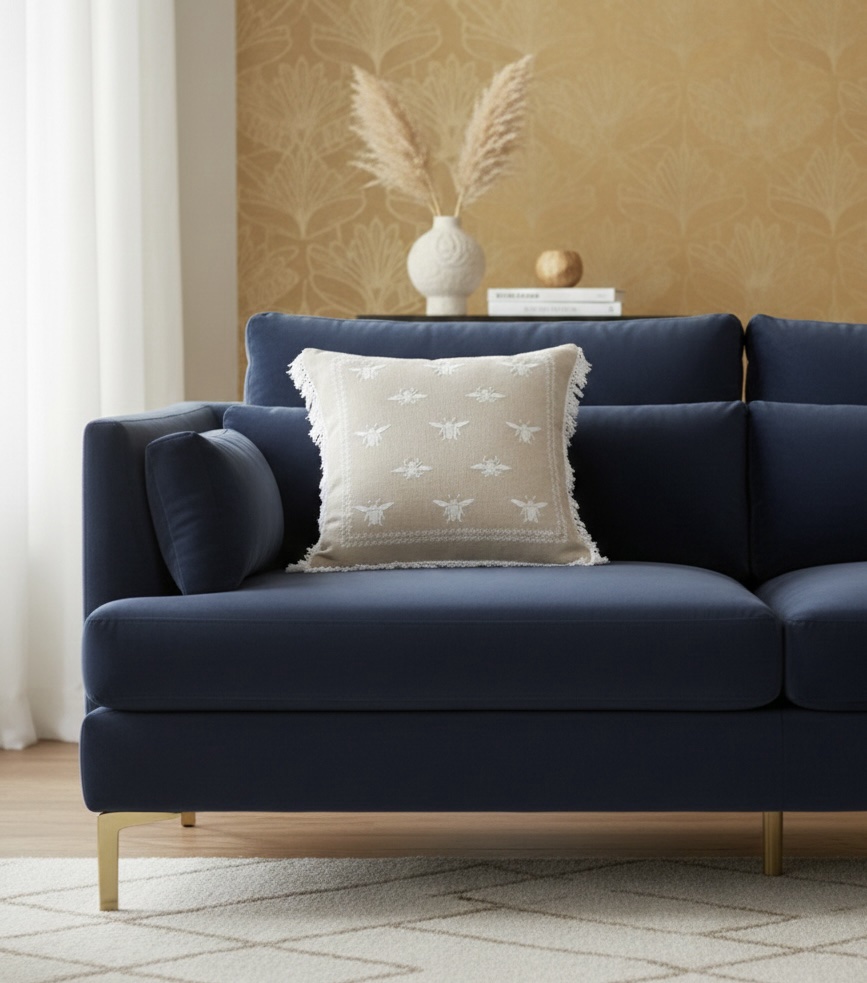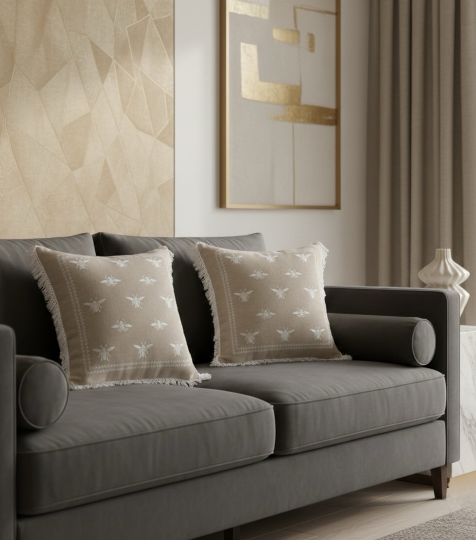Loved the little honey bee embroidery! The fabric feels really nice and it adds a subtle, classy touch to my sofa. Looks great with plain cushions.