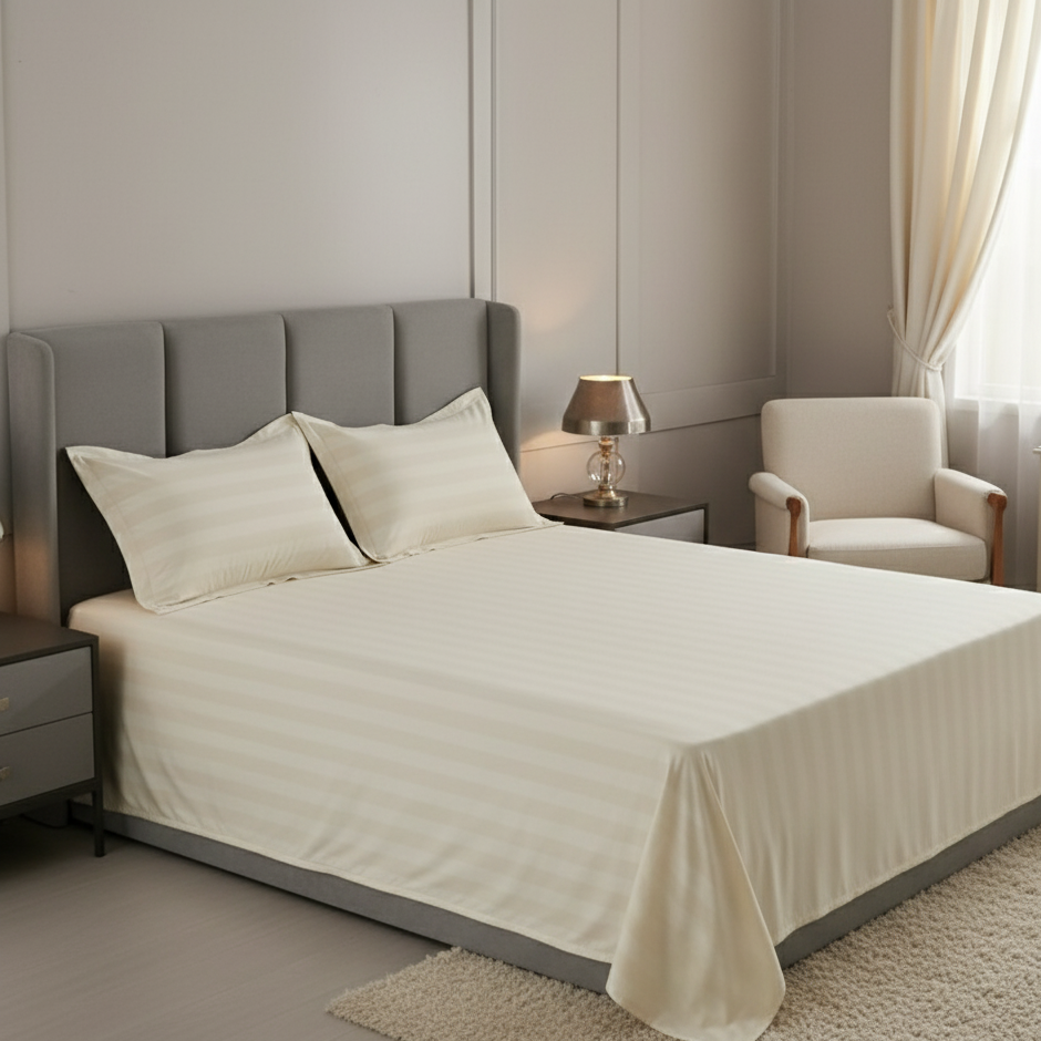 Upgrade your sleep experience and elevate your bedroom aesthetics with our striped Cotton ivory Bed Sheet Set. Enjoy the perfect blend of comfort and style every night. Make your purchase today and experience the luxury of AVIS Bedlinen.