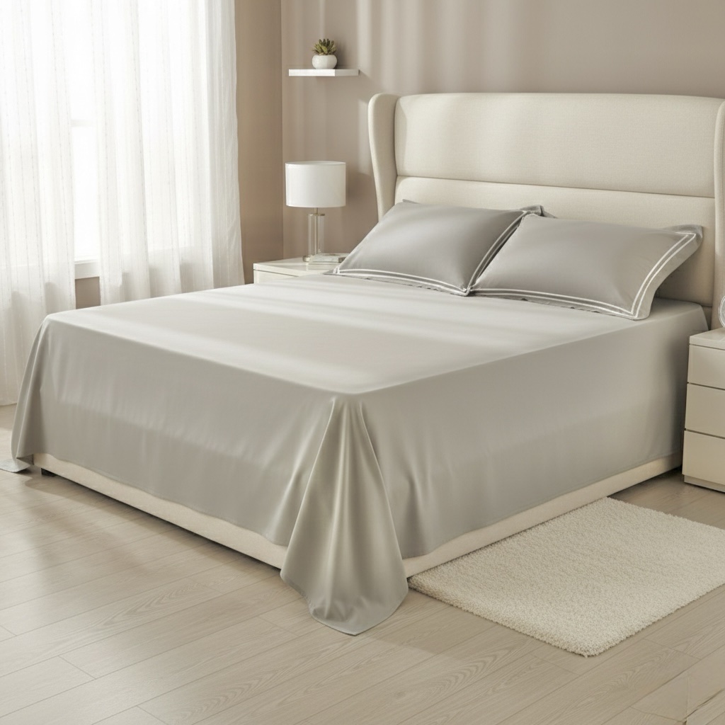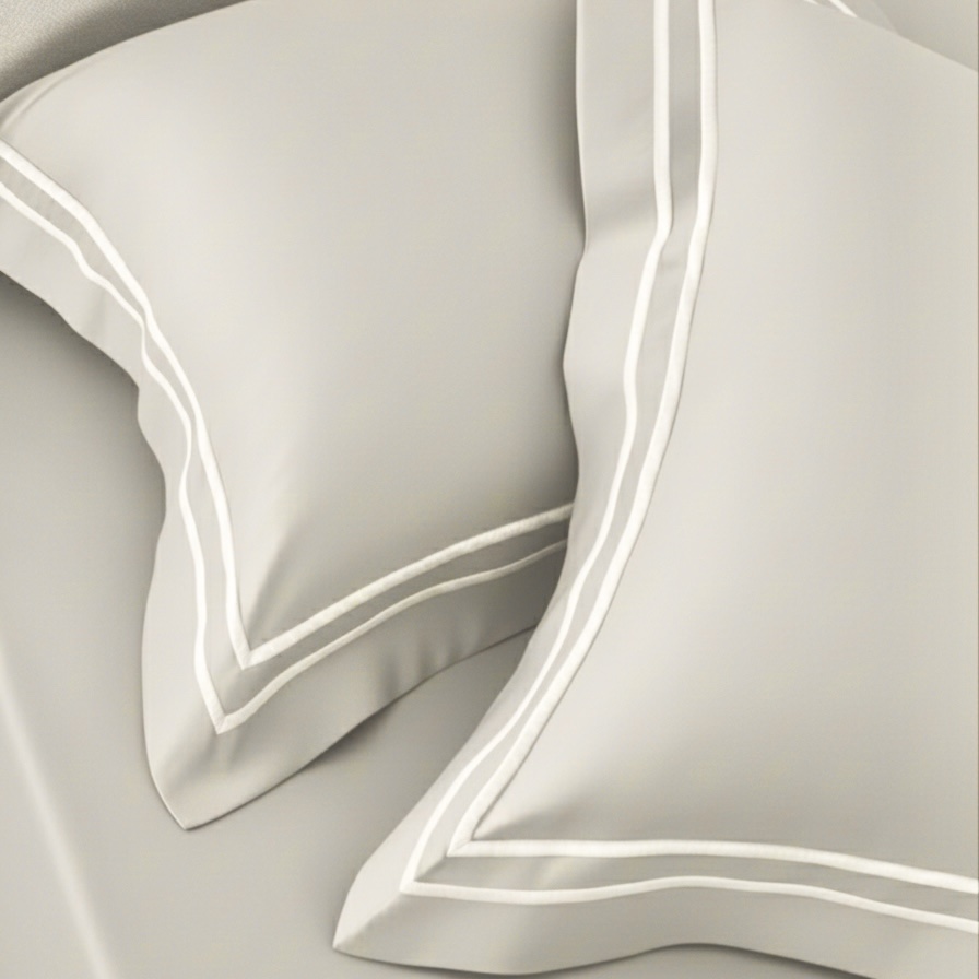Premium 400 TC bed sheet set with soft 100% cotton fabric and elegant double-merrow pillow covers. Smooth finish, long-lasting quality, perfect for modern bedrooms. Pillow covers feature clean white stitched lines, while the bed sheet remains plain for a minimal, elegant look.