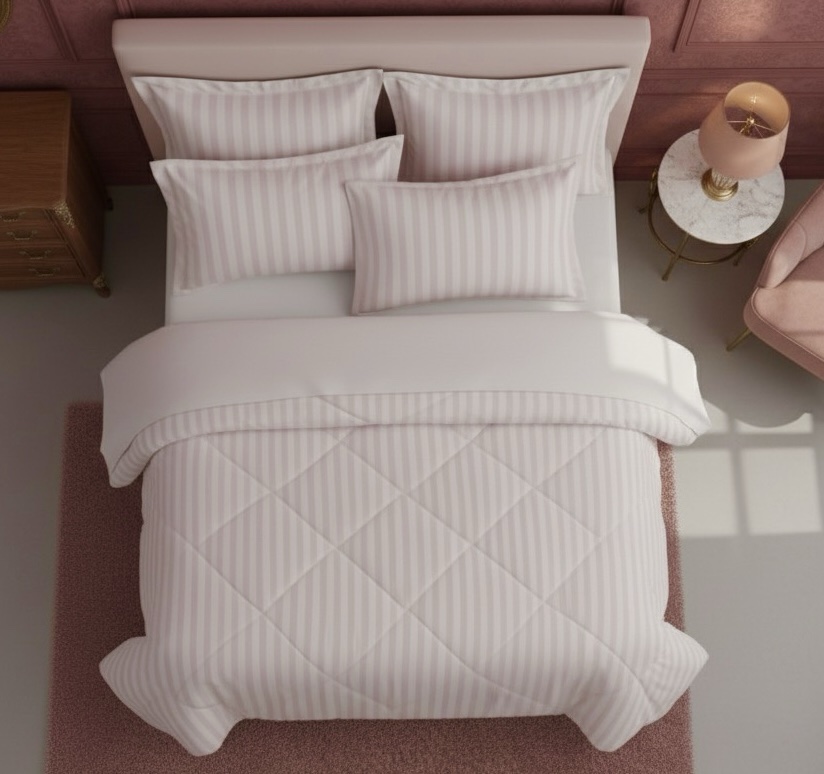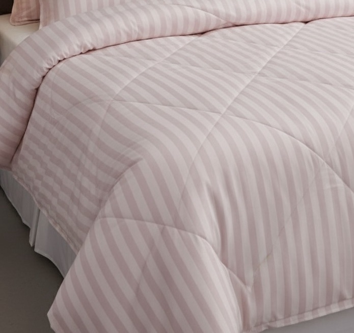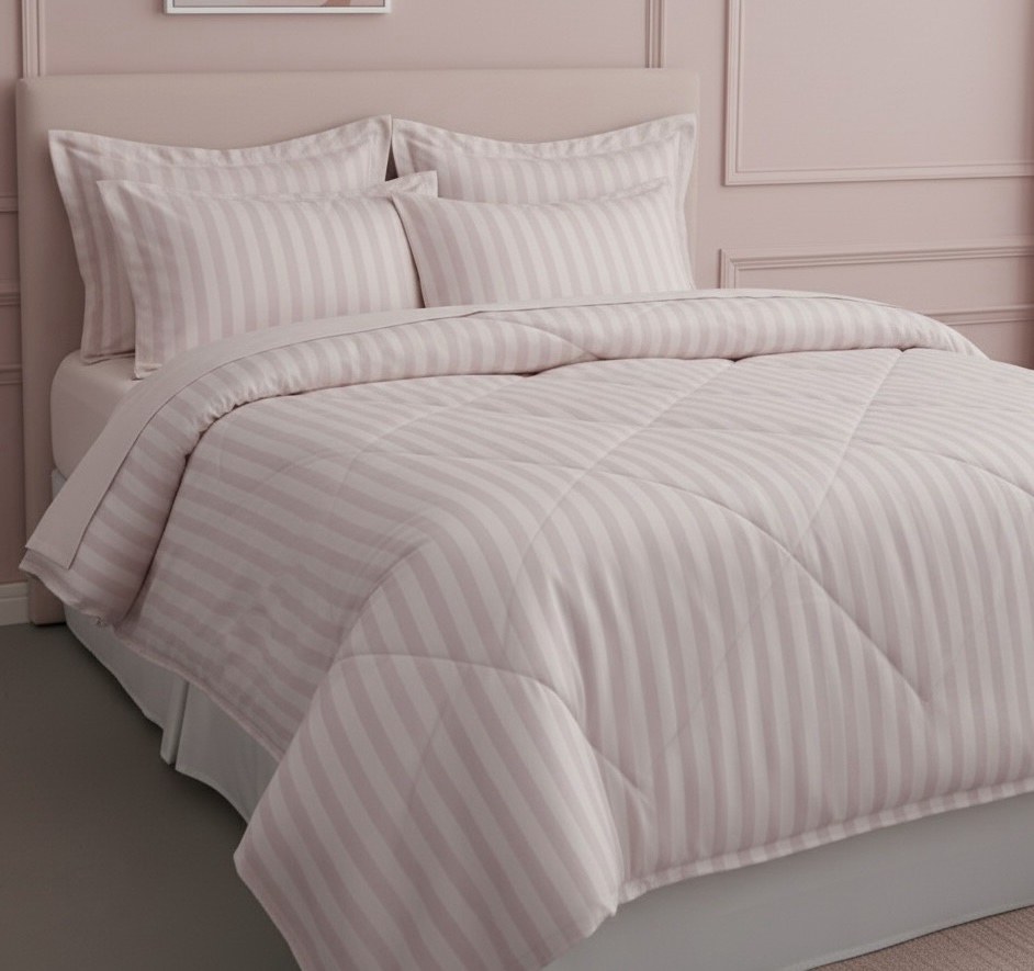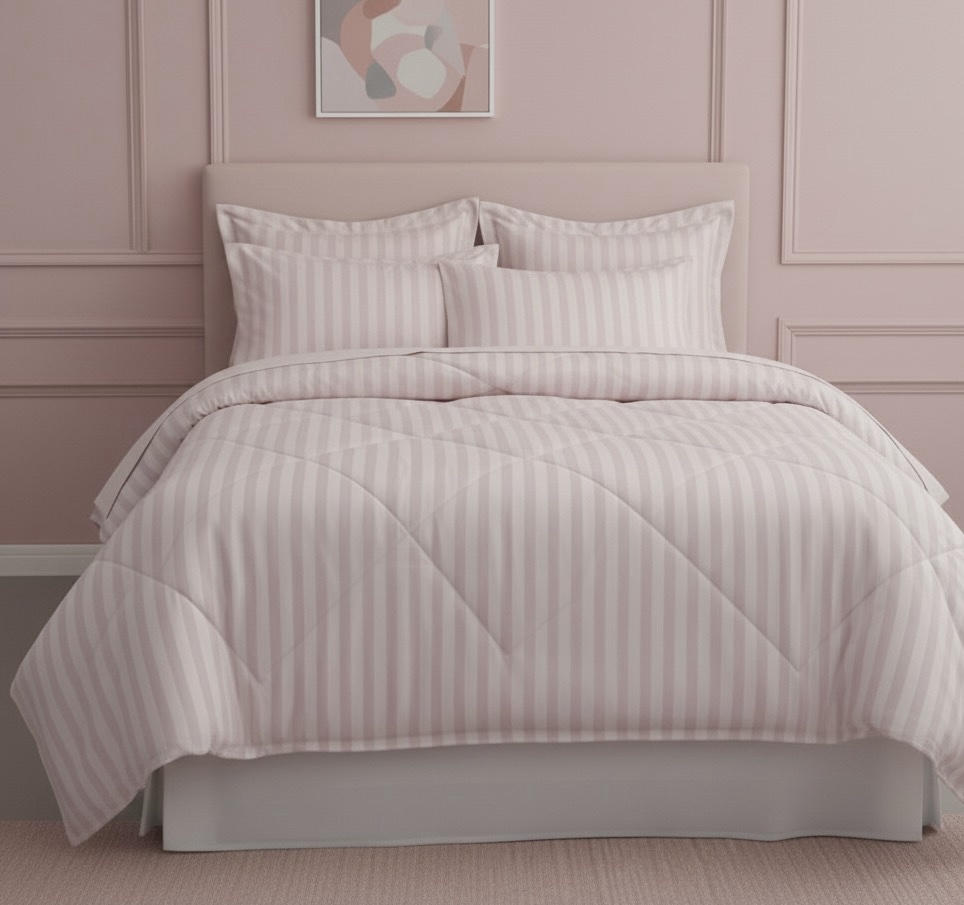 Made from 100% cotton with a 400 thread count sateen weave, this light pink comforter features a criss-cross stitch pattern for even fill and a smooth, breathable feel. Luxurious, lightweight, and perfect for year-round comfort.
