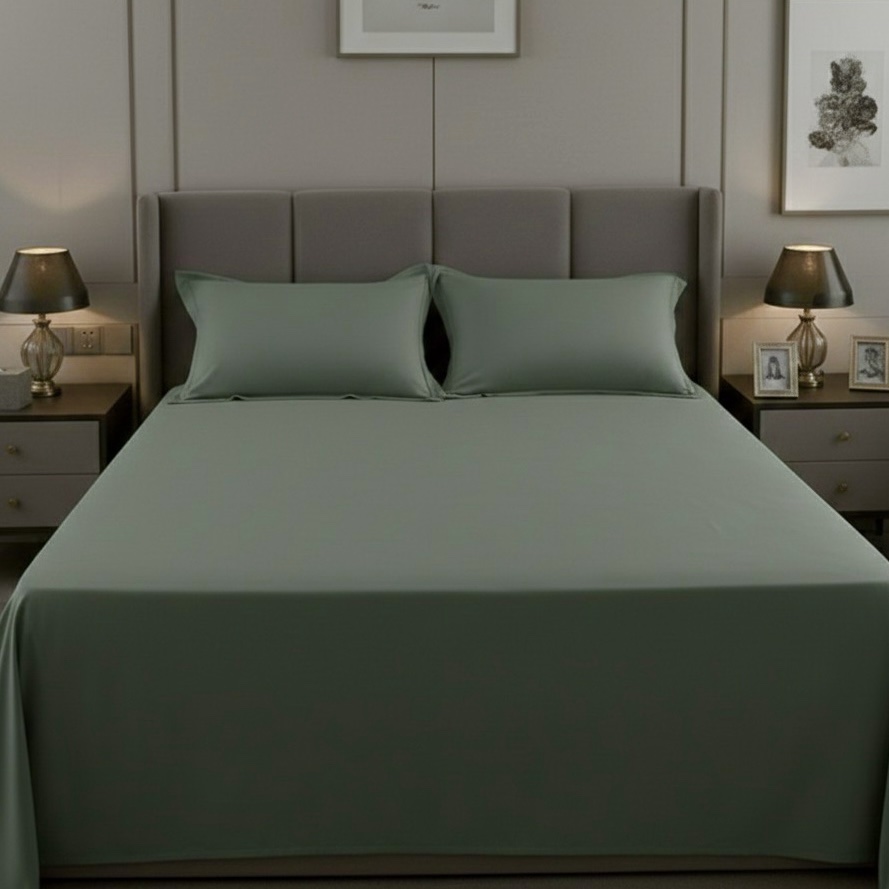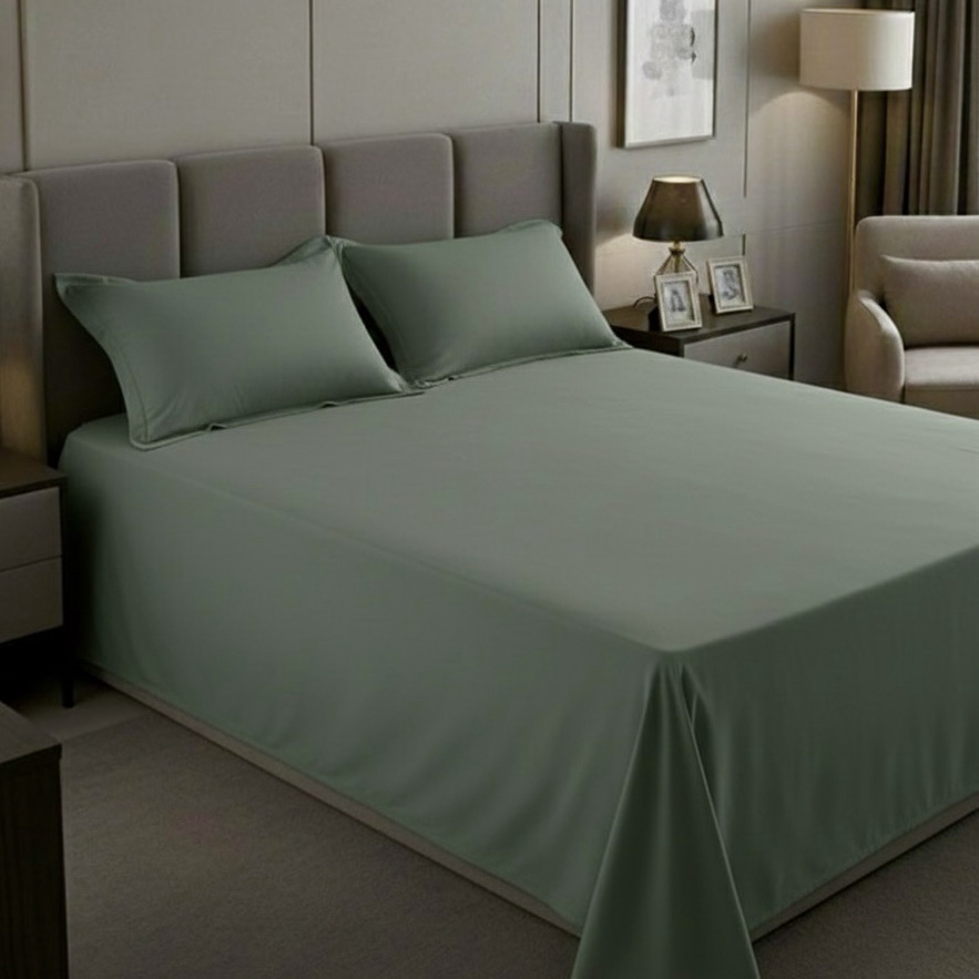 - Perfect Fit: The flat sheet is designed to snugly fit mattresses of various sizes, ensuring a secure and wrinkle-free sleeping surface. It also comes with two pillowcases in matching sage green for a cohesive look.